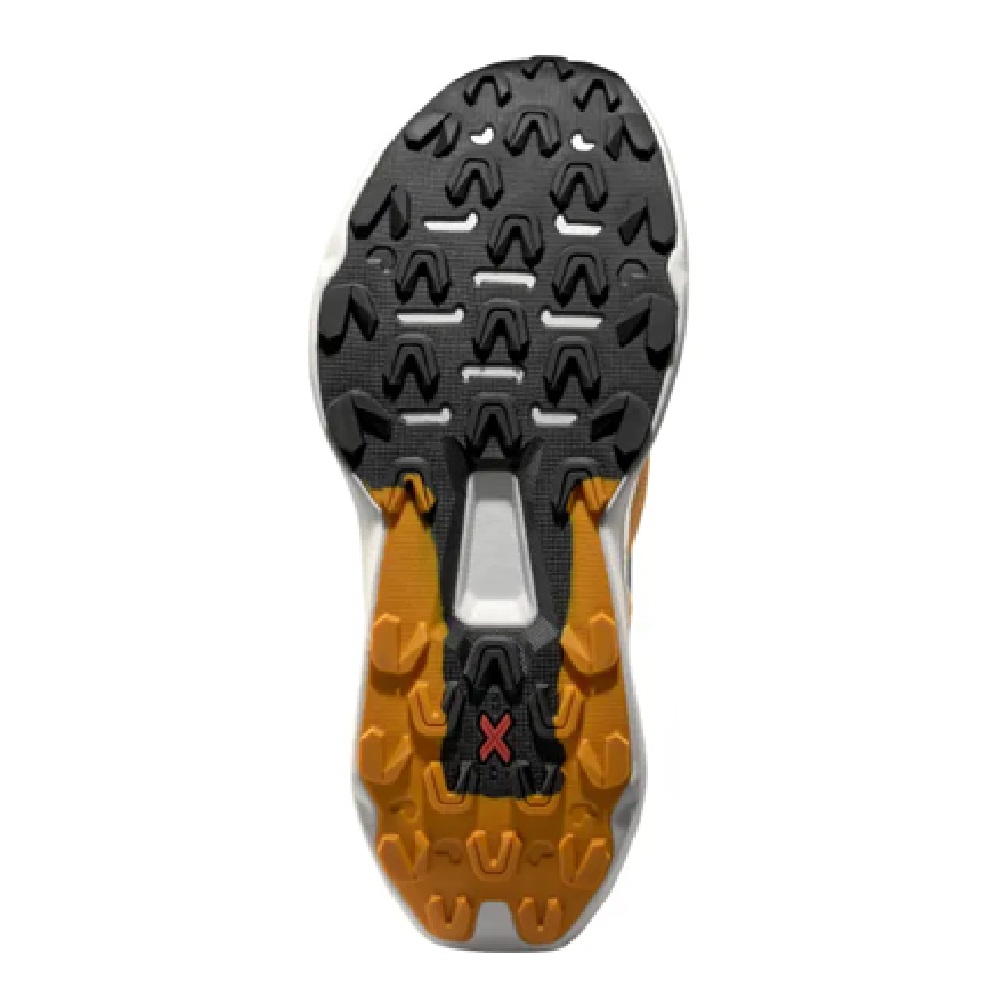 Ensuite, la semelle extérieure bi-densité FriXion® Red offre une adhérence remarquable sur les surfaces sèches ou mouillées. La gomme augmente la durabilité au niveau du talon tout en maximisant la traction à l’avant-pied. Par ailleurs, des crampons de 4 mm mordent le sol pour assurer une propulsion efficace en montée comme en descente. Le design renforcé du talon améliore considérablement le contrôle de la cheville lors des passages techniques.