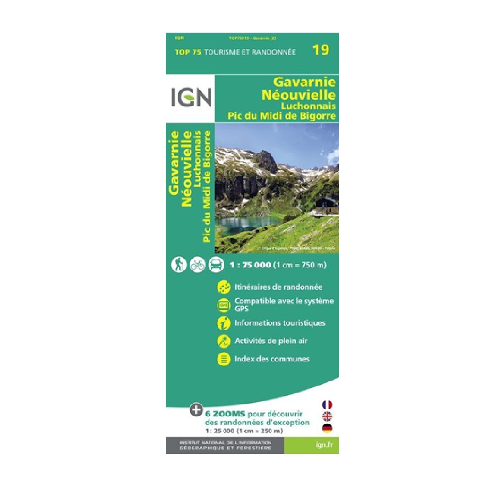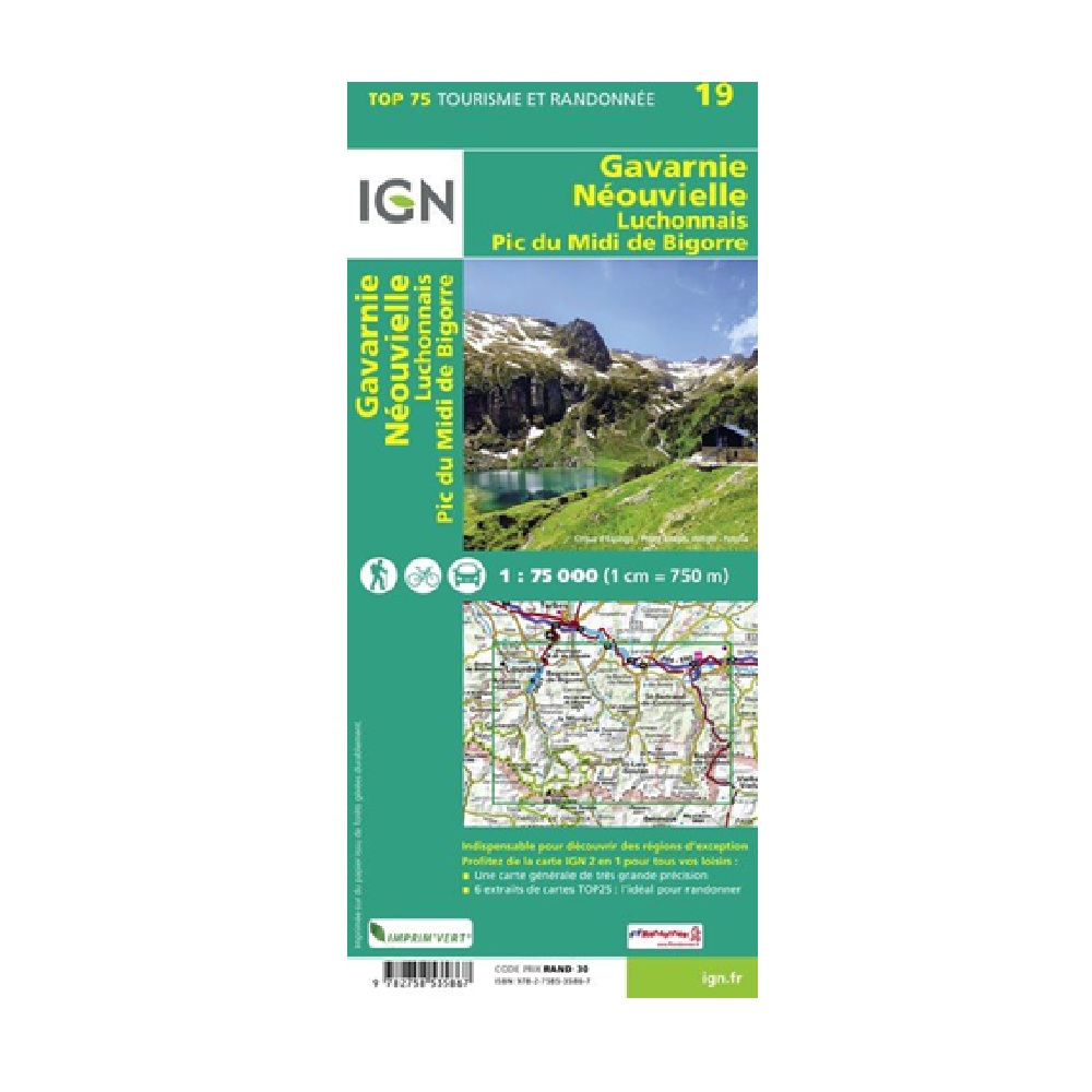 La Carte TOP 75 de l’Institut National de l’Information Géographique et Forestière (IGN) propose une vision d’ensemble d’un massif ou d’une région touristique. Son échelle principale est de 1:75000, soit 1 cm pour 750 mètres sur le terrain. Ce produit intègre également cinq extraits de cartographie détaillée 1:25000.
